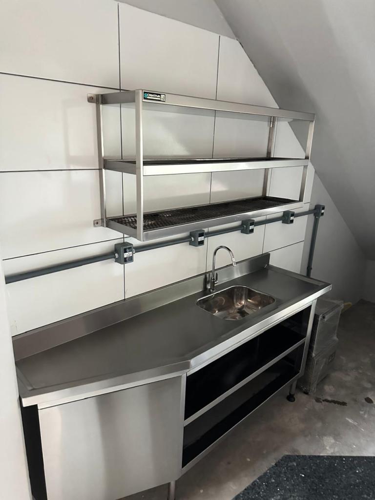 Os balcões em inox da Criativa são desenvolvidos sob medida para unir praticidade, resistência e acabamento técnico em ambientes profissionais do setor alimentício.