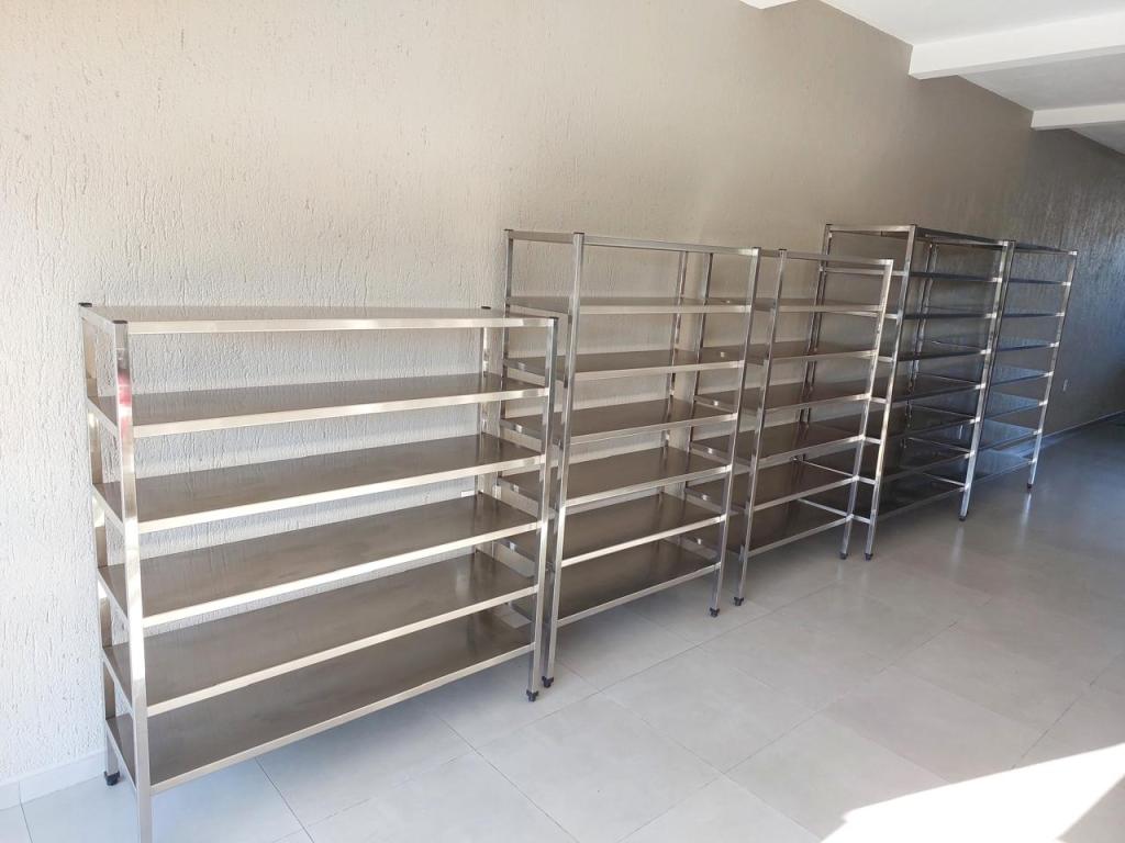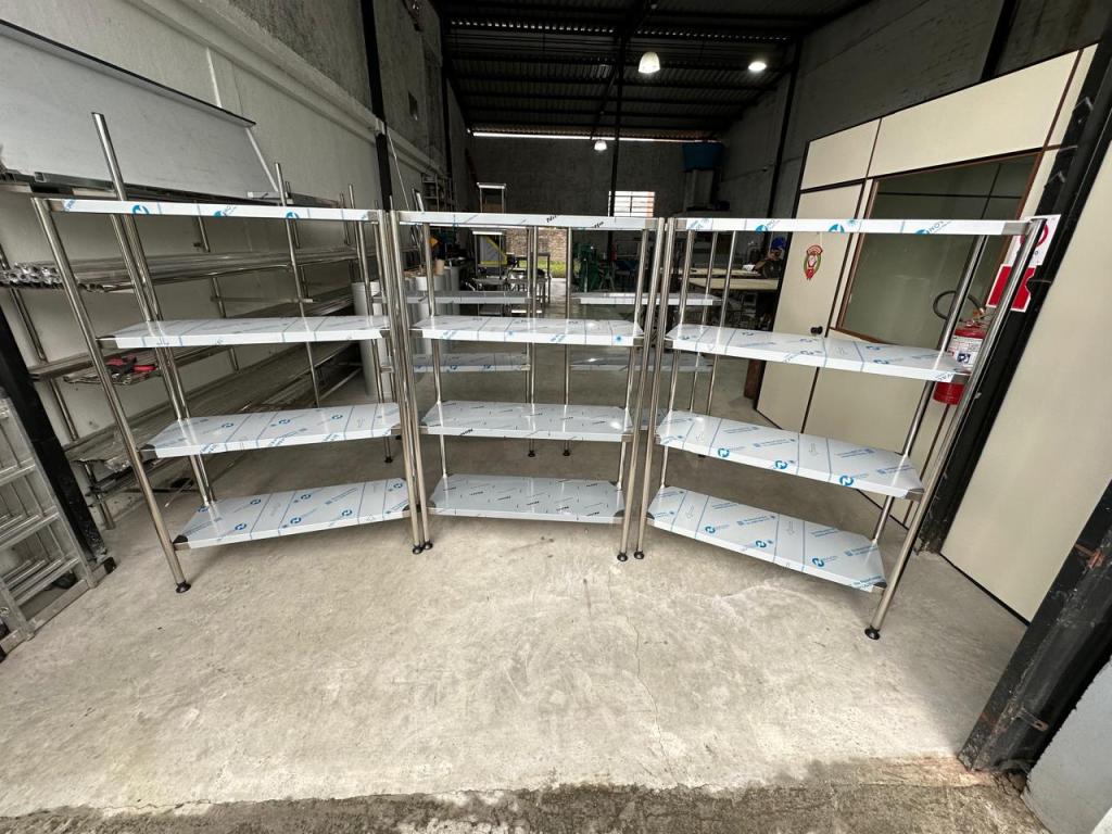 Fabricadas com aço inox escovado de alta qualidade, suportam cargas elevadas e mantêm a integridade estrutural mesmo em condições intensas de uso. Com design funcional e acabamento técnico, são ideais para otimizar espaços, facilitar a higienização e garantir conformidade com as normas sanitárias.